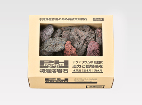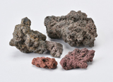 極めて硬質で多孔質の溶岩石です。そのため微生物などが定着しやすく水質浄化の作用があります。色合いもレッドブラックタイプなので水草水槽からマリンアウアリウムまでどんな水槽にもベストマッチ。